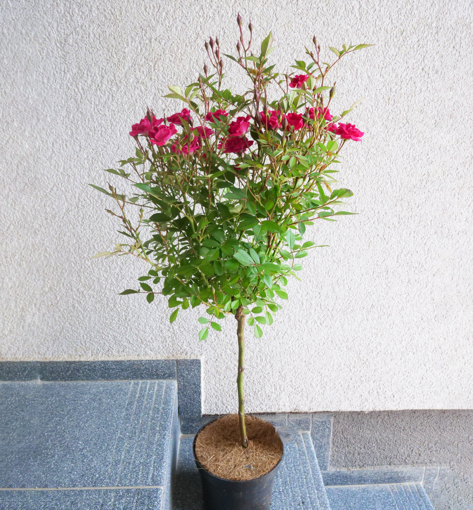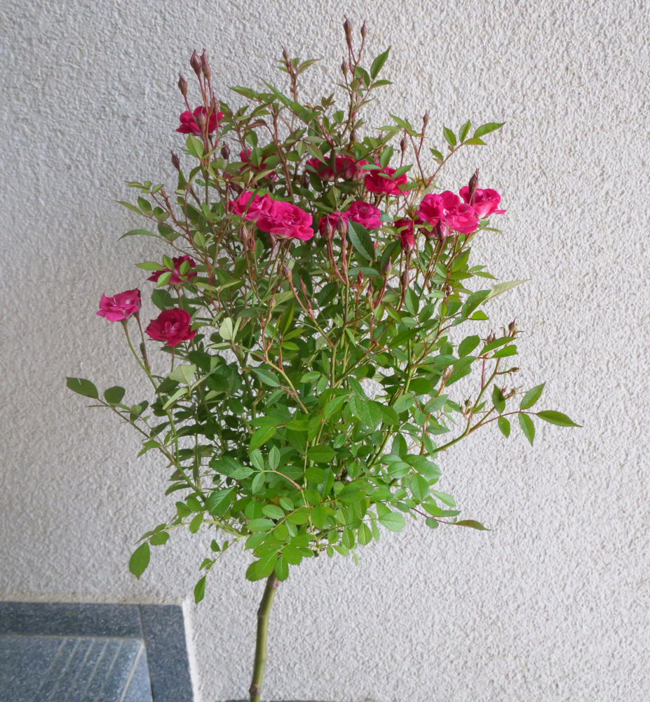 Eigenschaften: Die Zwergrose am Stamm ´TOPOLINA®NEW PINK´ blüht kontinuierlich von Juni bis Oktober mit attraktiven, rosafarbenen Blüten. Die Blüten heben sich wunderschön vom Hintergrund der dunkelgrünen, glänzenden Blätter ab und verströmen gleichzeitig einen angenehmen Duft. Der zarte Duft der Blüten lockt Nützlinge an und sorgt für eine angenehme Atmosphäre im Garten. Elegante Kugelkronen schmücken jeden Garten und Blumentopf. Während der Blütezeit ist es sehr wichtig, verblühte Blüten regelmäßig zu entfernen, um eine lange und üppige Blüte im nächsten Jahr zu gewährleisten.