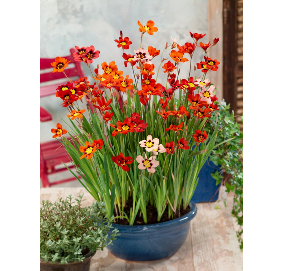 Eigenschaften:Zigeunerblume ist eine dekorative Knollenmischung, die im späten Frühling und Frühsommer blüht. Allerdings ist es eine wenig bekannte, aber sehr schöne Pflanze, die eine Höhe von 30-40 cm erreicht. Die Blüten sind sternförmig und haben dunklere Zierpunkte im Blüteninneren. Die Blätter sind schmal, lanzenförmig und von frischgrüner Farbe. Sie gelten als die schönsten Pflanzen für Steingärten, da ihre farbenprächtigen Blüten eine wundervolle Wirkung haben. Die Blumen eignen sich auch zum Schneiden, in einer Vase halten sie sich recht lange.